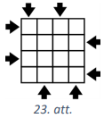 (A) Pierādi, ka dotajā \(4 \times 4\) rūtiņu laukumā (skat. 23.att.) nevar ierakstīt \(16\) dažādus naturālus skaitļus tā, lai katrā rūtiņā būtu ierakstīts viens skaitlis un katrā rindā un katrā kolonnā skaitļi pieaugtu bultiņas norādītajā virzienā.