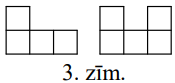 Kvadrāts sastāv no \(n \times n\) vienādām kvadrātiskām rūtiņām. Ir zināms, ka to var sagriezt tādos gabalos, kādi parādīti 3.zīm., pie tam viena veida gabalu ir tikpat, cik otra. Atrast mazāko iespējamo \(n\) vērtību.