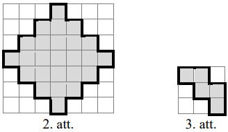 Rūtiņu lapā uzzīmēta figūra (skat. 2.att.). Kāds ir lielākais skaits 3.att. doto figūru, ko var izgriezt no 2.att. figūras? Griezuma līnijām jāiet pa rūtiņu malām.