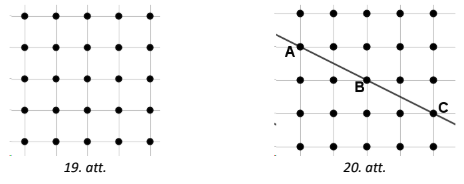 Piezīme. Ievēro, ka uz vienas taisnes atrodas ne tikai punkti, kas atrodas vienā rindā, kolonnā vai diagonālē, bet arī, piemēram, punkti \(A, B, C\) (skat. 20. att.)!