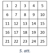 Dots \(5 \times 5\) rūtiṇu kvadrāts, kurā katrā rūtiṇā ierakstīts skaitlis no \(1\) līdz \(25\) (skat. 5.att.). No šī kvadrāta izgrieza \(6\) figūras, kas katra bija vai nu \(1 \times 4\) rūtiņu taisnstūris (vertikāls vai horizontāls), vai arī \(2 \times 2\) rūtiṇu kvadrāts, pāri palika viena rūtiņa. Kāds skaitlis var būt rakstīts uz šīs rūtiņas?