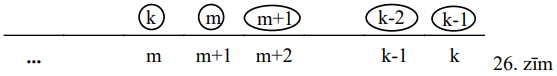 Attēlosim situācijas tā, kā parādīts 25.zīm.: zem svītras norādītas sējumu atrašanās vietas, virs svītras - to sējumu numuri, kas kādā brīdī atrodas atbilstošajās vietās (sējumu numuri apvilkti ar aplīšiem):