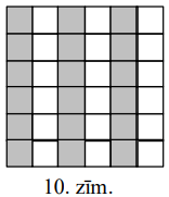 (B) nē. Kvadrātu \(6 \times 6\) var sagriezt kvadrātos \(2 \times 2\). Pierādīsim, ka to nevar sagriezt \(L\) - tetramino. Iekrāsosim kvadrāta rūtiņas, kā parādīts 10.zīm. Katrs \(L\) - tetramino satur vai nu \(3\), vai \(1\) melnu rūtiņu. Tāpēc \(9\ L\) - tetramino kopā satur nepāra skaitu melnu rūtiņu. Bet melno rūtiņu pavisam ir \(18\).
