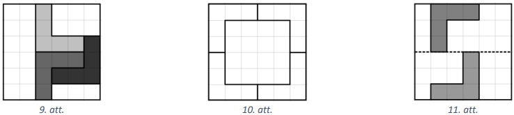 Kāds mazākais skaits stūrīšu (skat. 8.att.) jāizgriež no \(6 \times 6\) rūtiņu laukuma, lai no tā vairs nevarētu izgriezt nevienu šādu stūrīti? Griezuma līnijām jāiet pa rūtiņu līnijām un stūrīši var būt pagriezti.