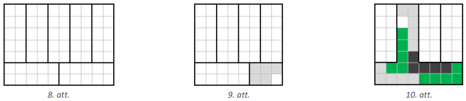 Taisnstūri \(7 \times 2018\) sadalām \(201\) taisnstūrī \(7 \times 10\) un vienā taisnstūrī \(7 \times 8\). Katru taisnstūri \(7 \times 10\) sadalām taisnstūros \(2 \times 5\) tā, kā parādīts 8.att. Lauriņa taisnstūri \(7 \times 8\) var sagriezt tā, kā parādīts 9.att., bet Pēcītis tā, kā parādīts 10.att. Tātad abi var izgriezt vienādu skaitu figūru.