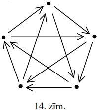 (A) Var gadīties, ka ir \(5\) deputāti, kuru "aizspriedumu struktūra" attēlota 14.zīm. Nekādus divus no tiem nevar iekļaut vienā komisijā. Tātad var gadīties, ka nepieciešamas vismaz \(5\) komisijas.