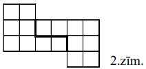 Figūra, kas attēlota 1.zīm., sastāv no vienādām kvadrātiskām rūtiņām. Vai to var sagriezt divos gabalos tā, lai no šiem gabaliem varētu salikt vienu kvadrātu? Griezumiem jāiet pa rūtiņu līnijām; gabali saliekot nedrīkst pārklāties un saliktā kvadrāta iekšpusē nedrīkst palikt tukšumi.