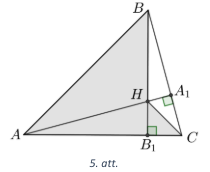 Pret malām \(B C\) un \(A C\) novilktos augstumus apzīmējam ar \(AA_{1}\) un \(BB_{1}\) (skat. 5.att.). Ievērojam, ka \(S_{ABHC}=S_{ABC}-S_{HBC}\).