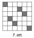 Dots kvadrāts ar izmēriem \(6 \times 6\) rūtiṇas. lekrāso 6 rūtiṇas tā, lai no dotā kvadrāta nevarētu izgriezt nevienu 6. att. doto figūru, kam visas rūtiņas ir neiekrāsotas!