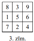 (B) Vai var 2.zīm. parādītās tabulas rūtiņās ierakstīt naturālus skaitļus no \(1\) līdz \(81\) (katrā rūtiņā - citu skaitli) tā, lai izpildītos tāda pati īpašība?