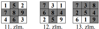 b. iekrāsotas trīs vidus rūtiņas (skat. 8.zīm.). Aplūkosim rūtiņas, kas