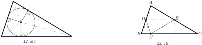 (A) Novelkot ievilktās riņķa līnijas rādiusus pret visām trim trijstūra malām, tas tiek sadalīts trīs četrstūros (skat. 12.att.). Katram no tiem simetrijas ass ir dotā trijstūra bisektrise (12.att. atzīmēta ar pārtrauktu līniju).