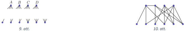 Šahistus apzīmējam ar punktiem. Ja divi šahisti spēlējuši neizšķirti viens ar otru, tad atbilstošos punktus savienojam ar līniju. Tad, atbilstoši uzdevuma nosacījumiem, no katra punkta iziet tik līniju, cik parādīts 9.att.