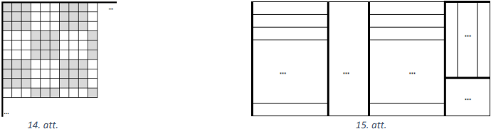 Sākotnējo rūtiņu laukumu šaha veidā izkrāsosim \(3 \times 3\) rūtiņas lielos melnos un baltos kvadrātos (skat. 14.att.).
